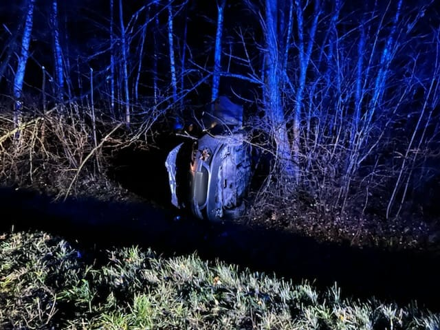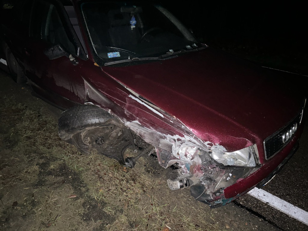 W tym samym czasie policjanci pracowali na miejscu wypadku na trasie Wielbark-Jedwabno. Funkcjonariusze ustalili, że 80-letni kierowca samochodu marki Mitsubishi chciał uniknąć zderzenia ze zwierzęciem leśnym i gwałtownie skręcił pojazdem. Mieszkaniec województwa mazowieckiego stracił panowanie nad samochodem i zjechał do przydrożnego rowu, gdzie samochód dachował. W wyniku zdarzenia 41-letni pasażer doznał obrażeń wymagających hospitalizacji. 80-latek był trzeźwy.