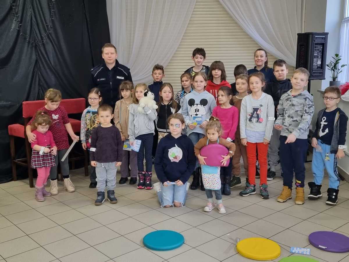 Dzielnicowy gminy Świętajno sierż. Damian Lemański w poniedziałek (29.01.2024 r.) odwiedził dzieci uczestniczące w zajęciach w Gminnym Ośrodku Kultury w Świętajnie. Policjant rozmawiał z dziećmi na temat zasad bezpieczeństwa podczas zimowych zabaw, które były zawarte w „Dekalogu Narciarza”. Najmłodsi dowiedzieli się również, dlaczego tak ważne jest noszenie odblasków. W ramach akcji „Oklaski za odblaski” prowadzonej przez Starostwo Powiatowe w Szczytnie, Bank Spółdzielczy w Szczytnie oraz Komendę Powiatową Policji w Szczytnie uczestnicy spotkania otrzymali także odblaski, które zapewnią im bezpieczeństwo podczas spacerów oraz w trakcie drogi do szkoły i powrotu do domu.