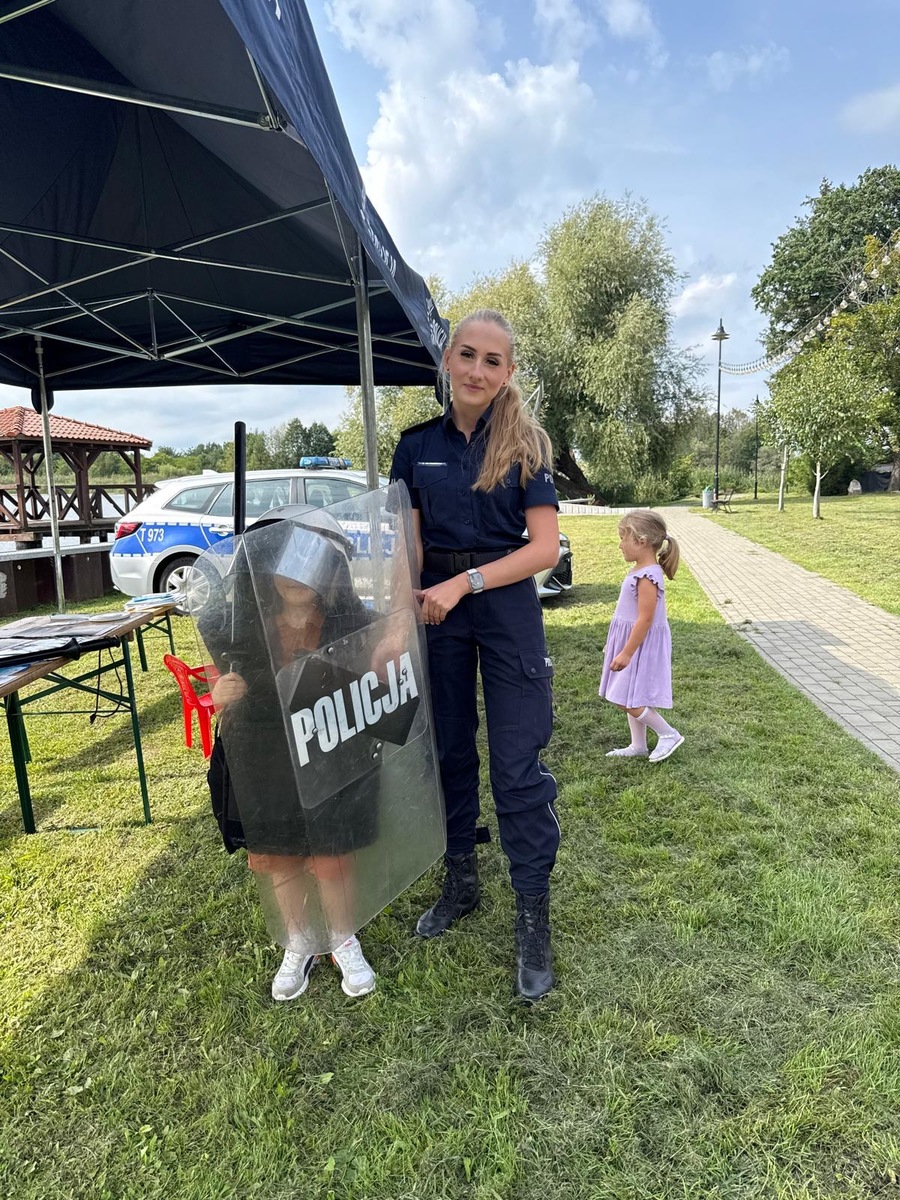 Nie zabrakło także prezentacji sprzętu policyjnego. Odwiedzający mogli zobaczyć z bliska radiowóz oraz elementy wyposażenia funkcjonariuszy – m.in. środki ochrony osobistej, które na co dzień wspierają policjantów w realizacji ich zadań.