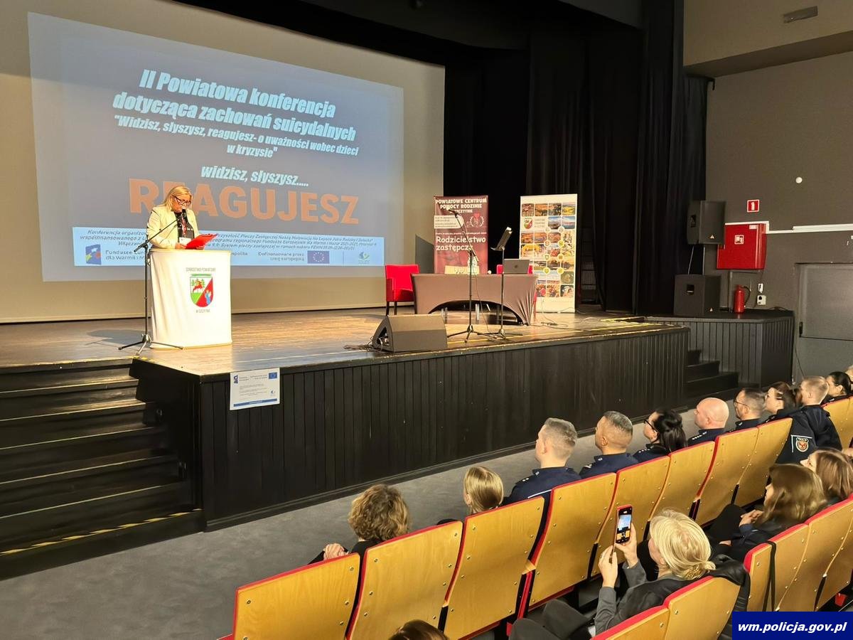 W Miejskim Domu Kultury w Szczytnie odbyła się II Powiatowa Konferencja dotycząca zachowań suicydalnych pod hasłem „Widzisz, słyszysz, reagujesz – o uważności wobec dzieci w kryzysie”, w której uczestniczyli również funkcjonariusze warmińsko-mazurskiego garnizonu Policji. Wydarzenie zgromadziło specjalistów i przedstawicieli wielu instytucji współpracujących na rzecz ochrony zdrowia psychicznego najmłodszych. Udział Policji podkreślił znaczenie współpracy w zakresie przeciwdziałania zachowaniom suicydalnym dzieci i młodzieży.