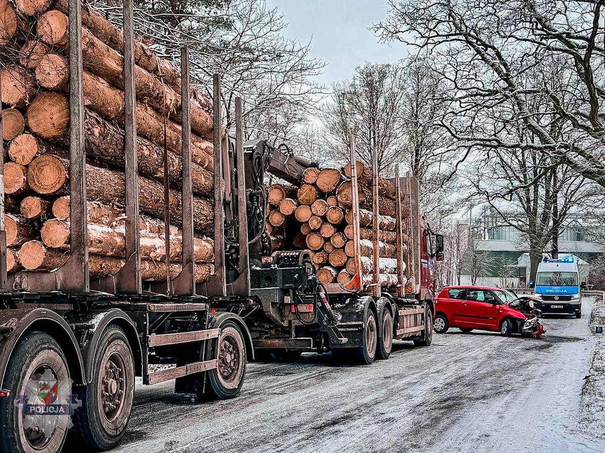 Do kolejnego zdarzenia doszło dwie godziny później w miejscowości Stachy, w gminie Wielbark. Ze wstępnych ustaleń policjantów wynika, że 63-letnia mieszkanka gminy Wielbark, kierująca samochodem osobowym marki Suzuki, na zakręcie straciła panowanie nad pojazdem i zderzyła się czołowo z jadącym prawidłowo pojazdem ciężarowym marki Volvo, którym kierował 50-letni mieszkaniec gminy Świętajno. Kobieta została przewieziona do szpitala. Kierujący pojazdami byli trzeźwi. Policjanci wyjaśniają dokładne przyczyny i okoliczności zdarzenia.