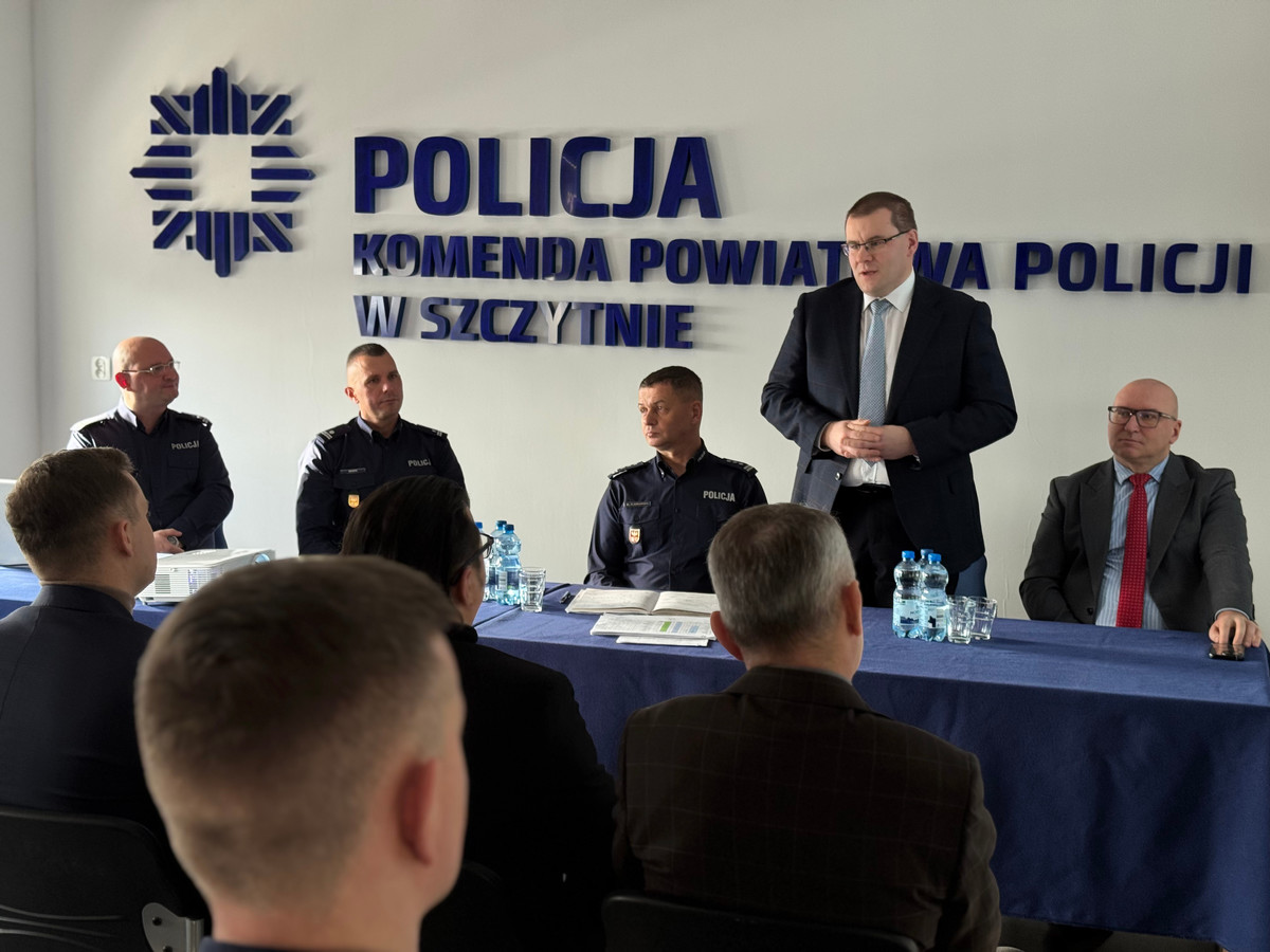 Spotkanie rozpoczęło się od złożenia meldunku Komendantowi Wojewódzkiemu Policji w Olsztynie, insp. Mirosławowi Elszkowskiemu, przez Naczelnika Wydziału Prewencji Komendy Powiatowej Policji w Szczytnie, podkom. Bartosza Marcinowskiego. Po powitaniu gości i kadry kierowniczej przez Komendanta Powiatowego Policji w Szczytnie, podinsp. Jakuba Sylwestrzaka, przedstawiono wyniki pracy jednostki. Komendant scharakteryzował strukturę komendy oraz szczegółowo omówił efekty działań w obszarze prewencji, bezpieczeństwa ruchu drogowego, a także zrealizowane inicjatywy profilaktyczne i promocyjne.