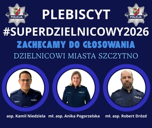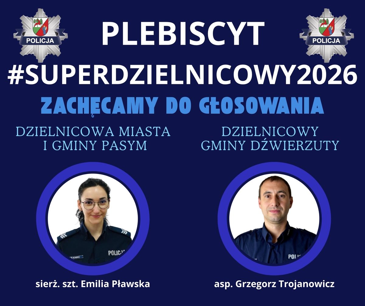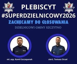Trwa plebiscyt #Superdzielnicowy2026, którego głównym założeniem jest promowanie bezpieczeństwa oraz wzmacnianie współpracy Policji z mieszkańcami. Mieszkańcy powiatu szczycieńskiego mogą oddać głos na swojego dzielnicowego, doceniając jego zaangażowanie w codzienną służbę. Głosowanie odbywa się online i potrwa do 16 kwietnia 2026 roku.
