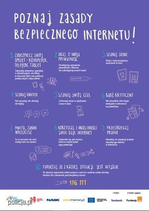 Jeśli jednak jako rodzice nie jesteśmy pewni, jak przestrzec dziecko przed ewentualnymi zagrożeniami, z którymi można się zetknąć w czasie korzystania z Internetu, warto nauczyć młodszych kilku prostych zasad, które mogą zaoszczędzić im nieprzyjemnych sytuacji. Prowadząc takie rozmowy zapewnijmy dziecko, że z każdym problemem może zwrócić się do nas – jako opiekunów, ale także do pedagoga czy policjanta, czyli osób, które wiedzą jak postępować, gdy zagrożone jest bezpieczeństwo.